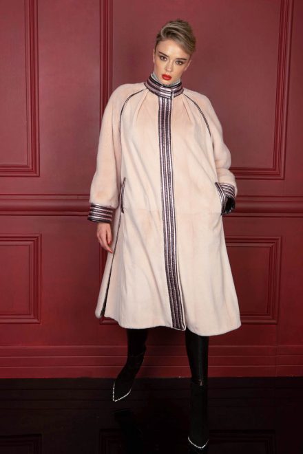 Pink pearl Swakara jacket with Lynx collar & apricot mink trimmings
